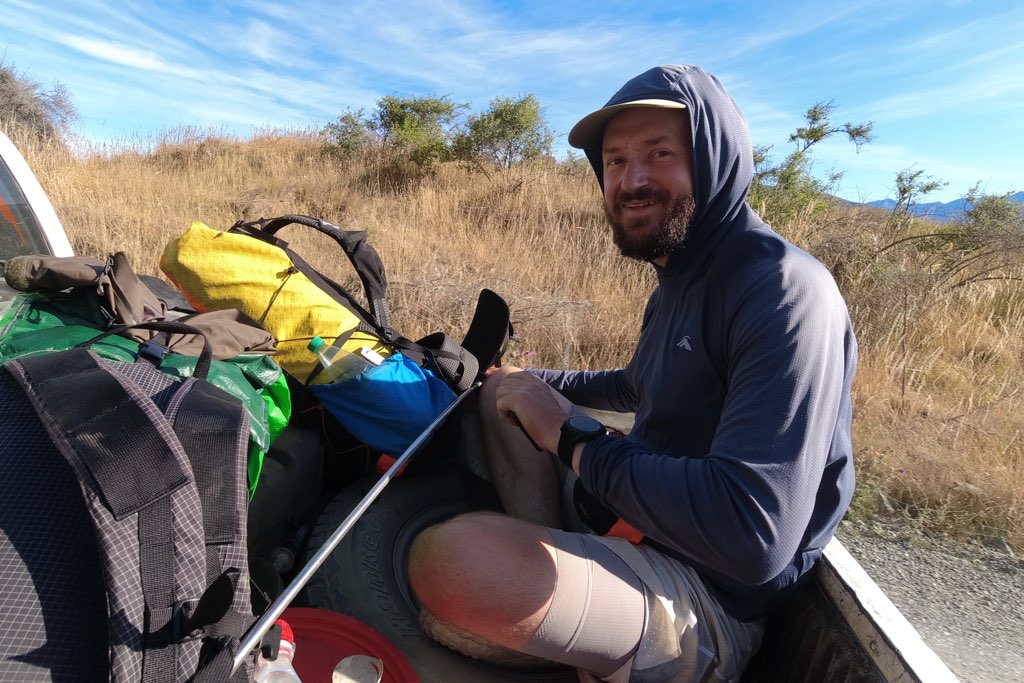 ここからトレイルヘッドまで約10キロ強。ヒッチハイクという他力本願だったったが、ここからなら最悪歩いてもいいと思いながら歩きながら再度ヒッチハイクを試みると、ピックアップトラックが止まって荷台に乗ることに。荷台に積んであったなにかの部品のエンジンオイルがいろんなところについてしまったが、スリル満点のドライブで100キロ近く出していた。快晴のもと、楽しい移動だった。