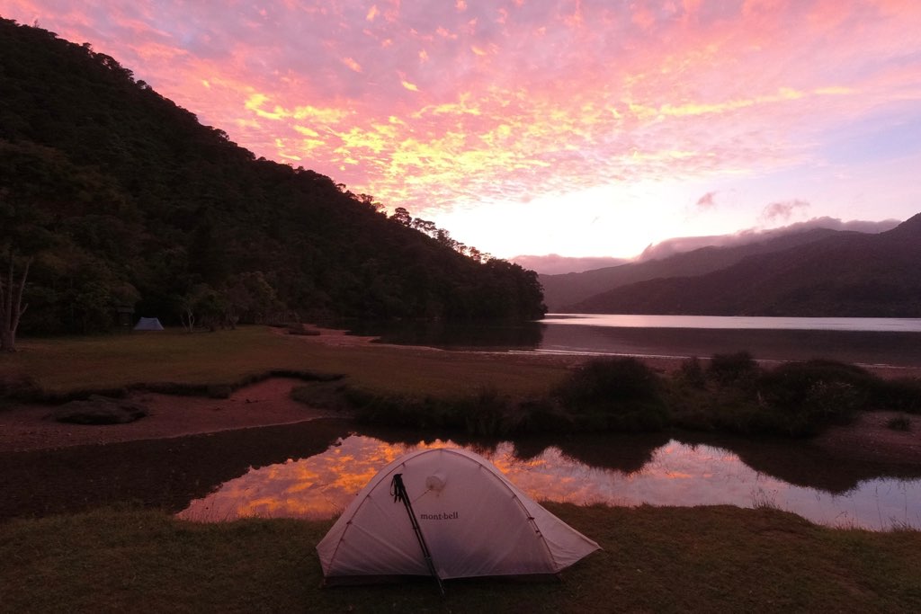 朝5時過ぎ、目を覚ますと外には美しい朝焼けが広がっていた。この贅沢な光景を前に、すぐに行動を急ぐ気持ちにはなれなかった。そこで、今日もゆっくりと朝ごはんを食べながらその美しい景色を堪能した。それにしても、ところどころサンドフライに刺された箇所がかゆい。それも旅であり、ロングディスタンスハイキングだ。