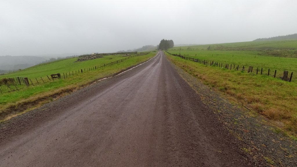 ロード歩きを経て牧牧場歩きになる。靴下と靴は珍しく乾いていたけど一瞬でびしょ濡れになった。ちなみに、雨の中でテントを撤収したのでテントもびしょ濡れ。