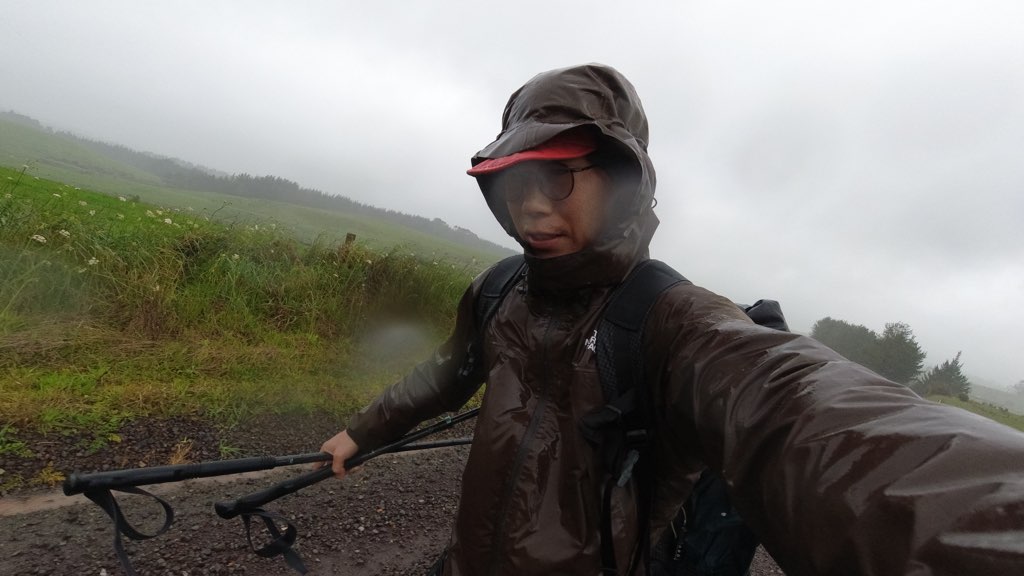 牧場歩きでは遮るものがなくてダイレクトに雨風に当たる。