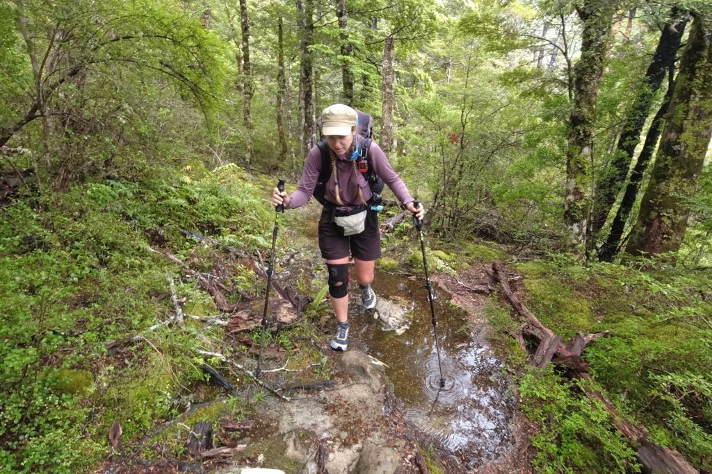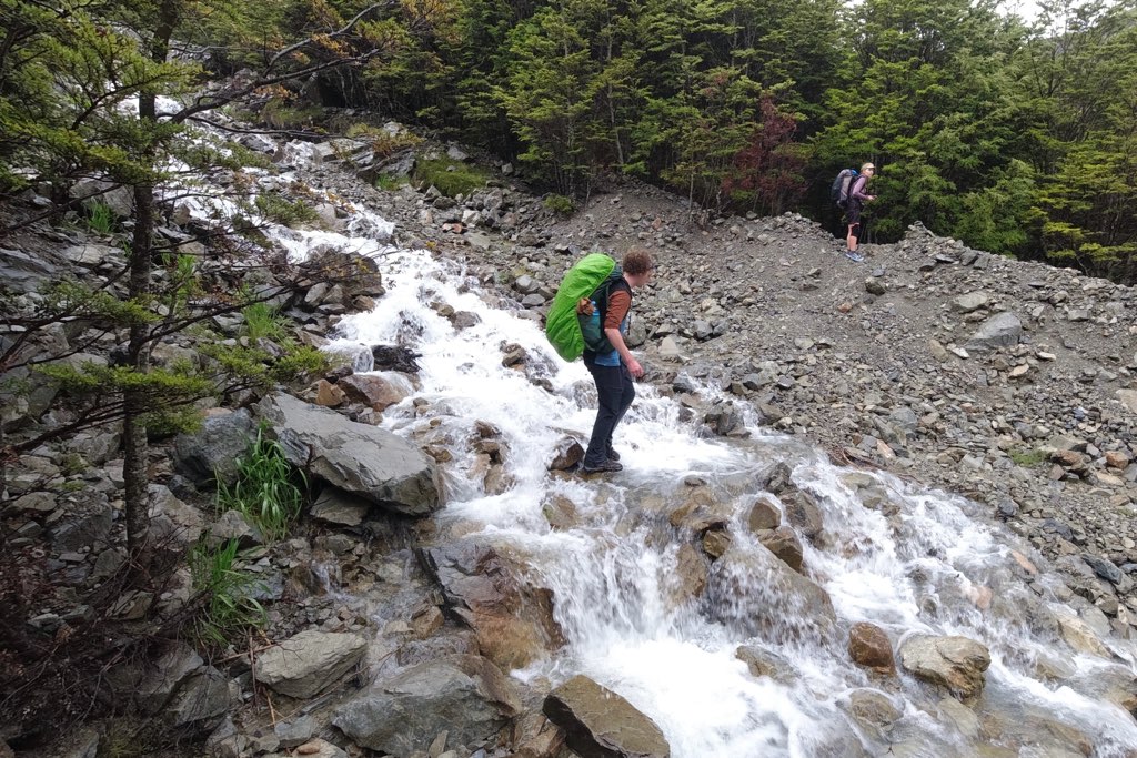 Upper Travers Hut直前の道が予想外の難関だった。パット見ではわからないが膝ほどの深さまで水に浸かり、冷たくて進むのが大変だった。