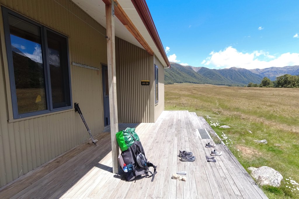 歩き続けて、遠くにポツンと見えたハットは、広大な景色の中ではまるで点のようだった。それでも近づいてみると、大きくてきれいなハットがそこに立っていた。13時前にAnne Hutに到着。いい感じの場所だったのでここを目的地にしてもいいかもしれないと思ったが、結局は休憩を挟んで14時前に再び出発する。