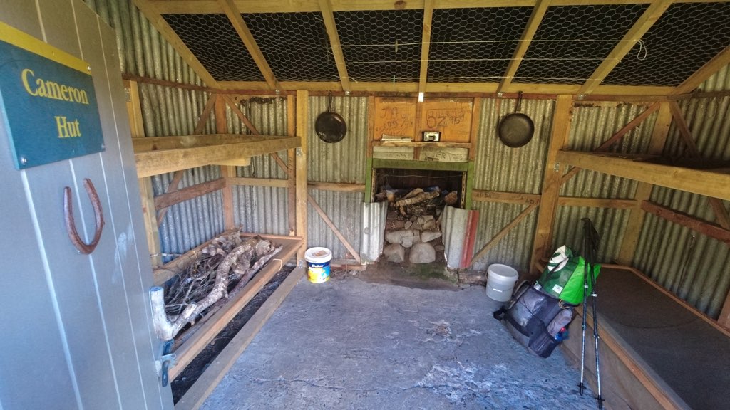 その後、美しい山道を進み、キャメロンハットに8時15分に到着。地図アプリFaroutでは「エクアドルの刑務所みたい」と書かれていたけれど、実際には小さくて温かい雰囲気のハットだった。どちらかというと、ボイルビレッジ手前で泊まったRokeby Hutのほうが刑務所感はあった。