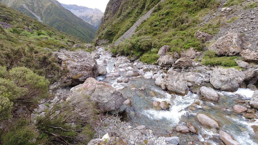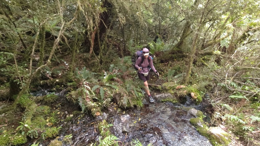 16時過ぎにUpper Deception Hutに到着し、16時20分に再び出発。ここからは、少しロッククライミングのような要素が出てきた。川渡りも続き、今日は何回川を渡ったかわからないほどだ。常に靴は濡れっぱなしで、沢登りのような感覚。
