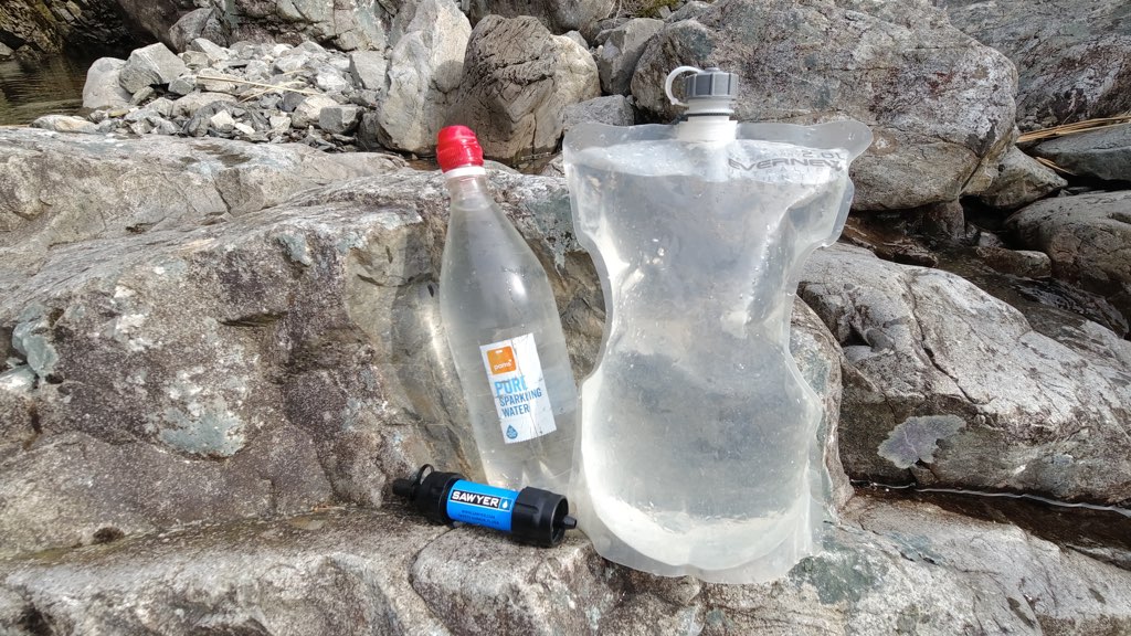 Goat Pass Hutの手前でストリームから水をフィルターし、17時45分にGoat Pass Hutに到着。