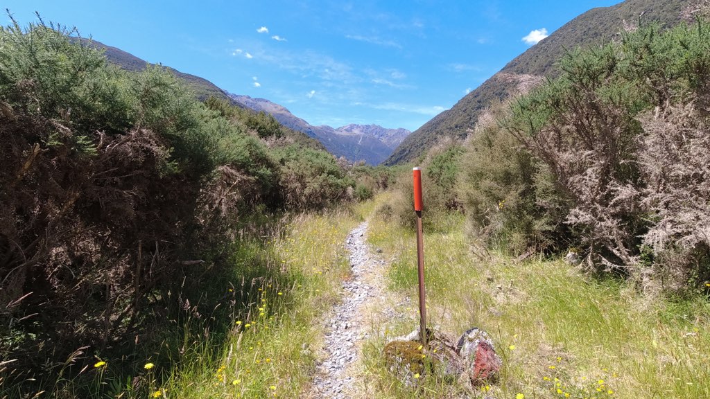 11時15分にMorrison Footbridgeに到着。ここでネットの電波が弱いながらも使えたので、Arthur’s Passの宿を予約。Mountain Houseはフルで予約が取れなかったのでNZ Alpine Clubに1人40ドルで予約。休憩中にトルティーヤやバーを食べ、再び出発。※Morrison Footbridgeからハイウェイに出てヒッチハイクでArthur’s Passに離脱することもできる