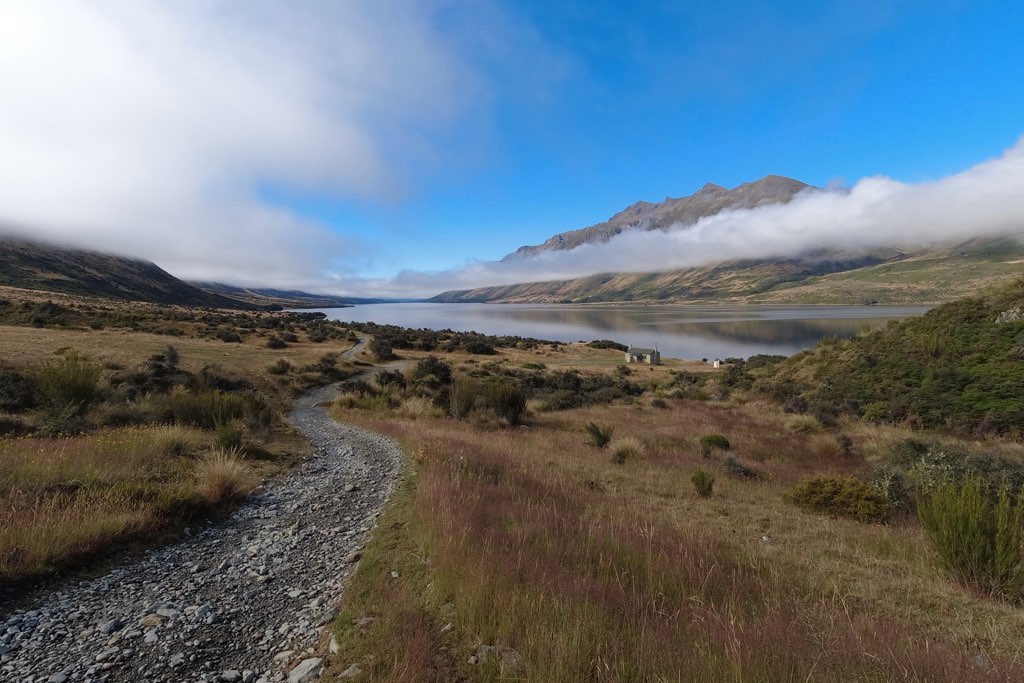 Careys Hutでダレンを追い抜いた。湖沿いのグラベルの道が続き、キャンプ場(Mavora Lakes Campsite)まであと3キロほどの距離で、車や馬とすれ違うこともあった。