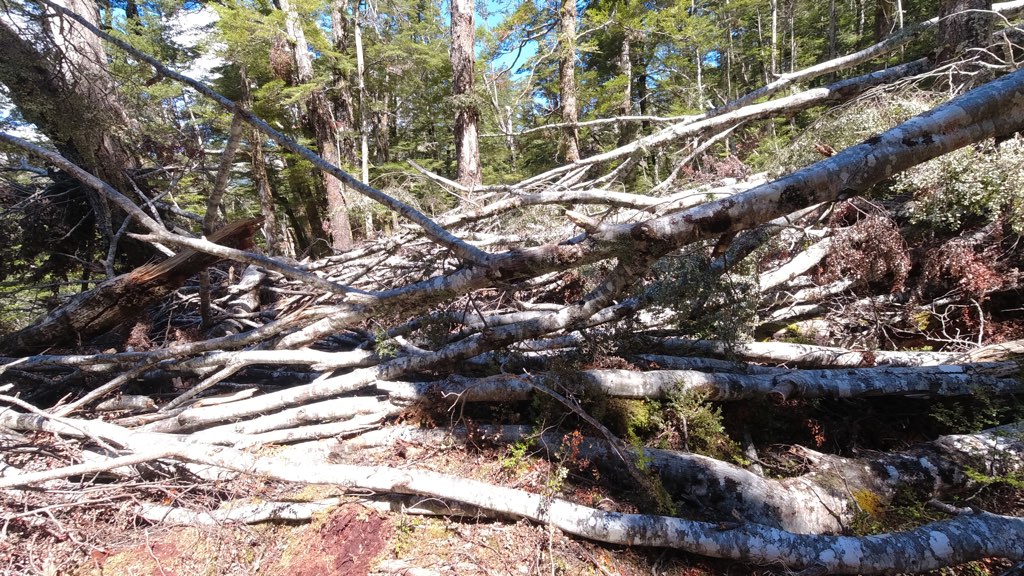 倒木が目立ち始めた。何十本もの木々が地面に倒れ、道をふさぐように横たわっている。通り抜けるためには少しずつ慎重に足を運ばなければならず、思った以上に時間がかかる。