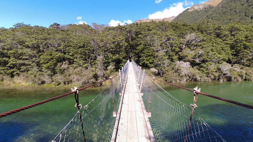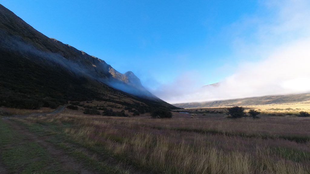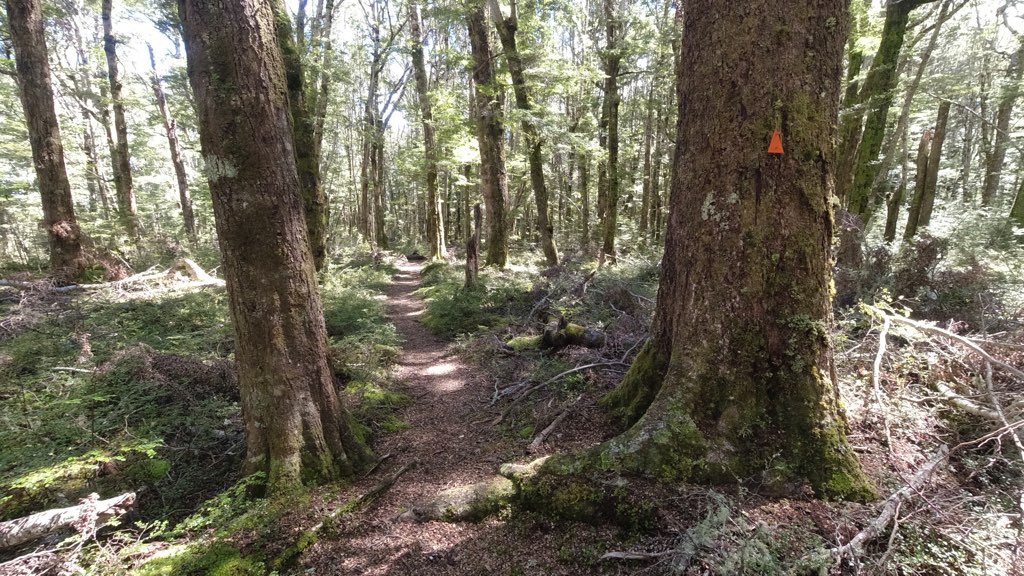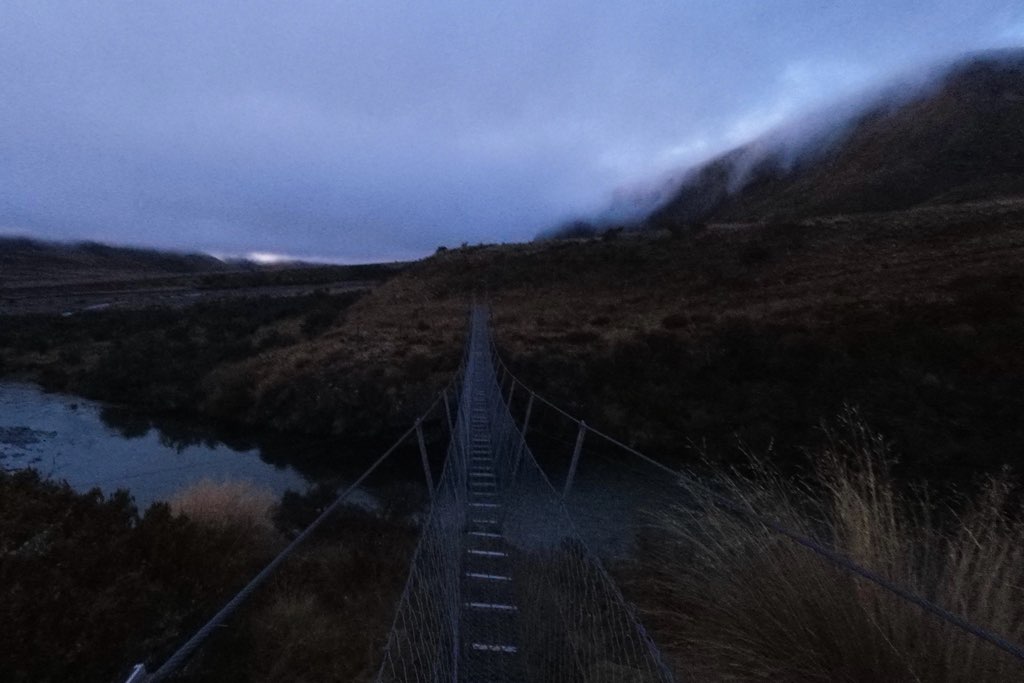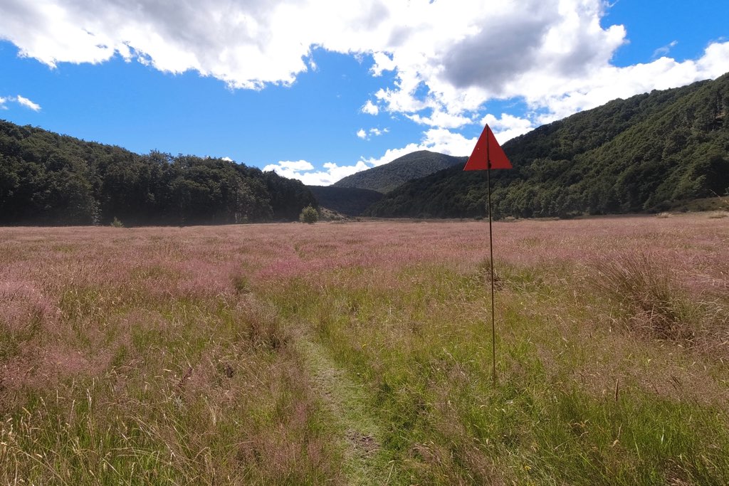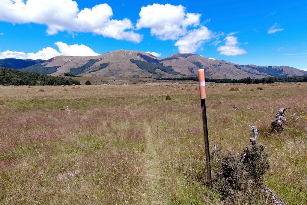 川の水位が高いので明日は渡渉することができず、この橋までは戻って来る予定。ここにはいくつかテントスペースもある。ここから4,5キロ進んだところにKiwi Burn Hutがある。渡渉ができないのでSoboとNoboともにここのHutに宿泊するメリットはHutで寝ることができる意外にない。往復で10キロほどのロスになるからだ。でも、私はHutで寝たいので向かう。