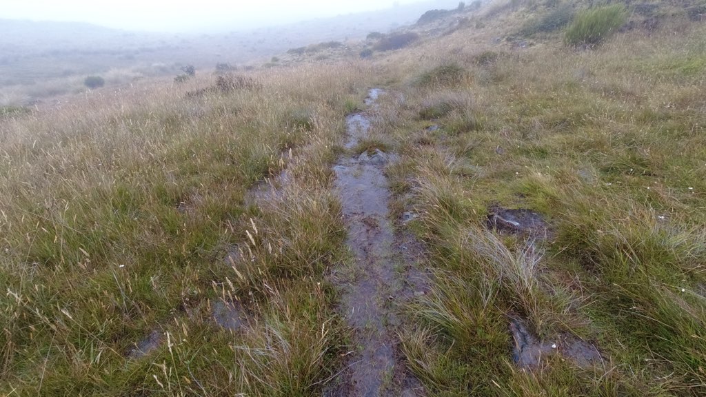 霧が強まり、足元は滑りやすくなる。迷いやすいナビゲーションを気にしながら道を辿る。